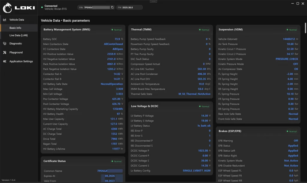 尽管Rivian的架构十分复杂,但LOKI PRO可以通过标准的OBD2接口连接。扫描软件能够自动检测车辆配置,从而节省时间并避免连接错误。